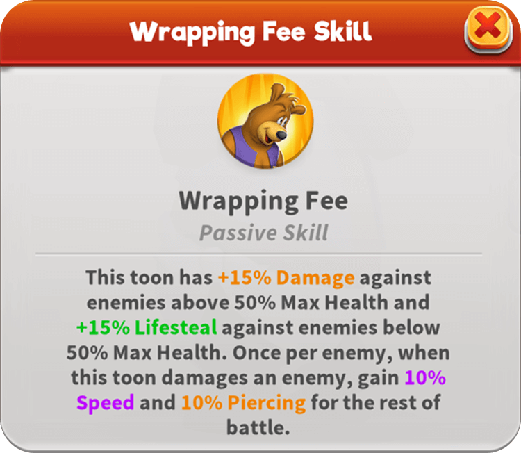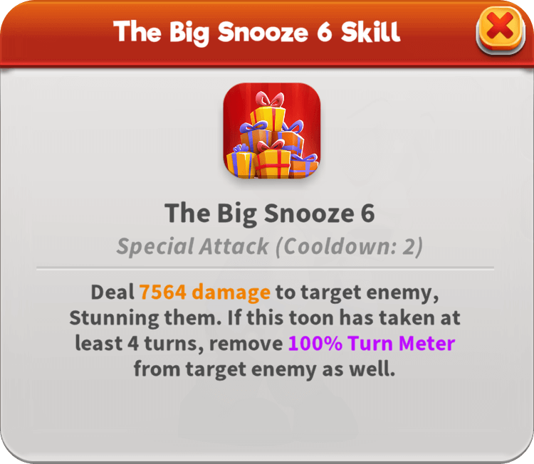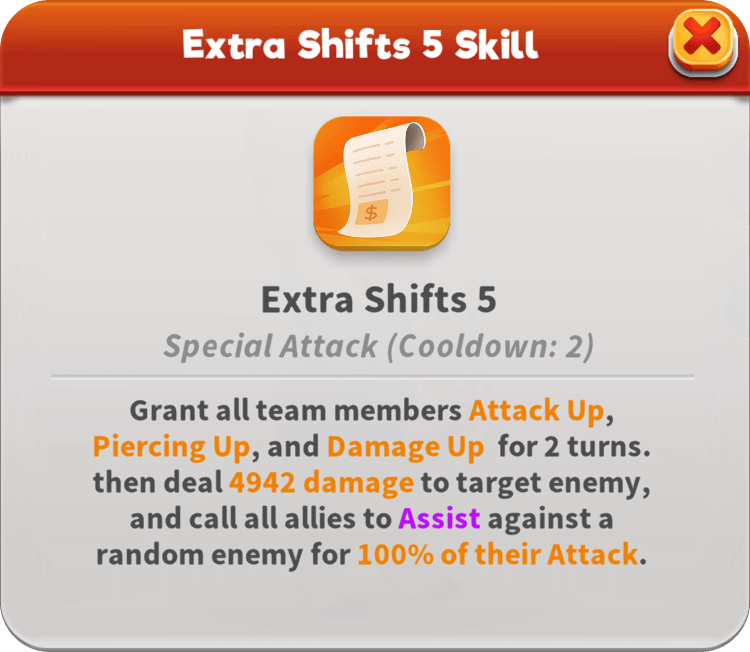 Assistant Manager Porky sticks his neck out to support his team through the busiest weeks of the year. He keeps them going with Speed Ups and steady healing while Cleansing debuffs from team members who’ve built up speed. He keeps tabs on the biggest troublemaker by marking the strongest enemy attacker and lowering their Damage. Under his watch, nothing can Stun the team, and if Bah Humduck Daffy is an enemy, nothing can Silence them either. He ensures the team is in good shape before calling them in for Extra Shifts.