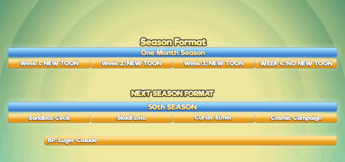 Midway through the season, things really start to heat up (ironically) with the arrival of Luger Claude, the Season 50 Battle Pass toon. His release marks the official start of the Sports Chumpions 2 Takeover, introducing winter-themed challenges, over-the-top antics, and not-so-graceful athletic mayhem.
