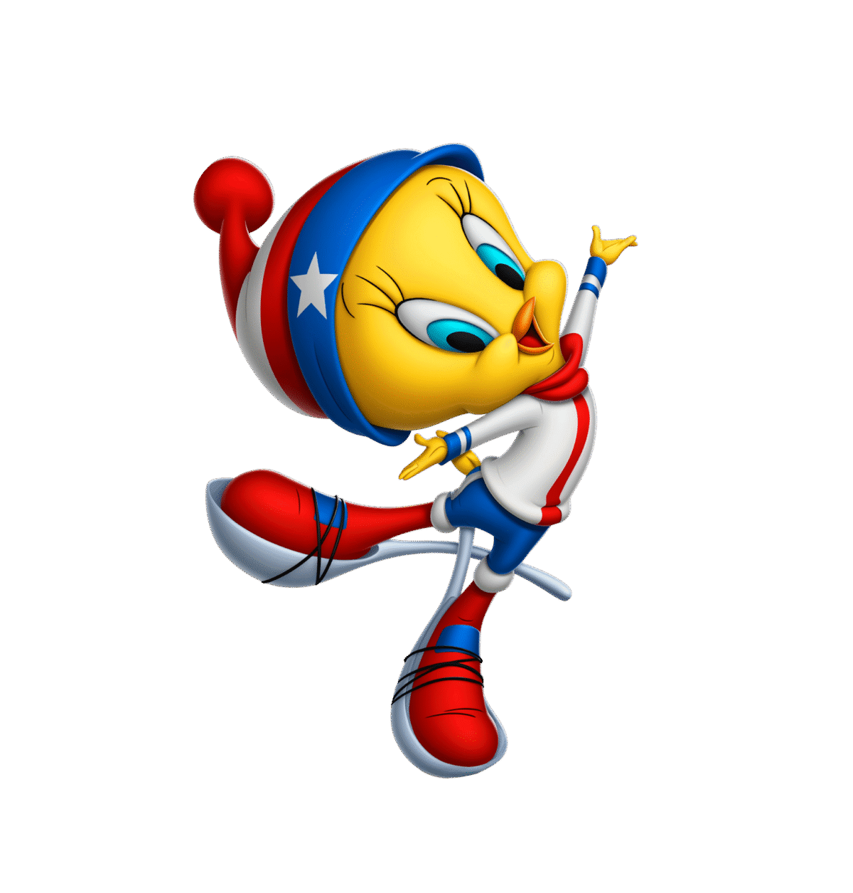 Light on his spoons and lightning-fast through the course, Alpine Skier Tweety hits the slopes, weaving past danger with style and speed.