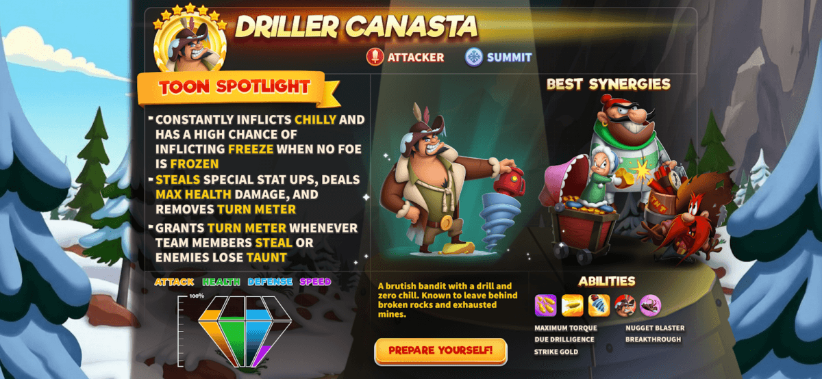 Use all your Sports Chumpions 2 Takeover toons in the campaign to finish unlocking and ranking up Driller Canasta! This toon requires 1,500 pieces to unlock but will instantly join your roster at 6 stars, ready to unleash chaos on your enemies!