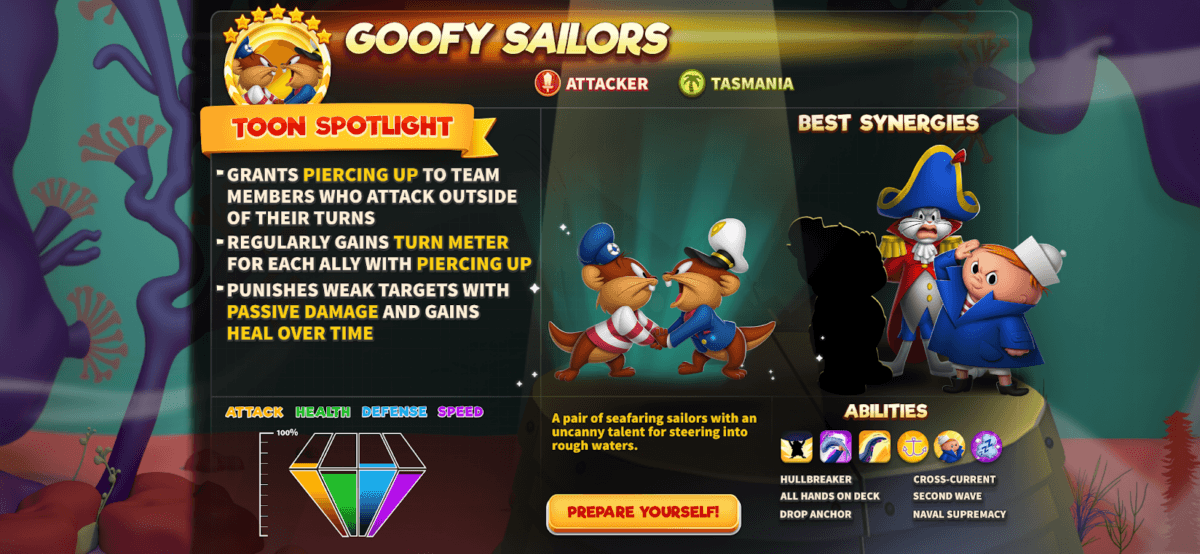 Meet the Goofy Sailors, a pair of seafaring scallywags who may look like they’re just along for the ride, but don’t let those wobbly sea legs fool you. These salty sea dogs thrive in the chaos of battle, popping up when you least expect it and steering the fight straight into stormy waters.