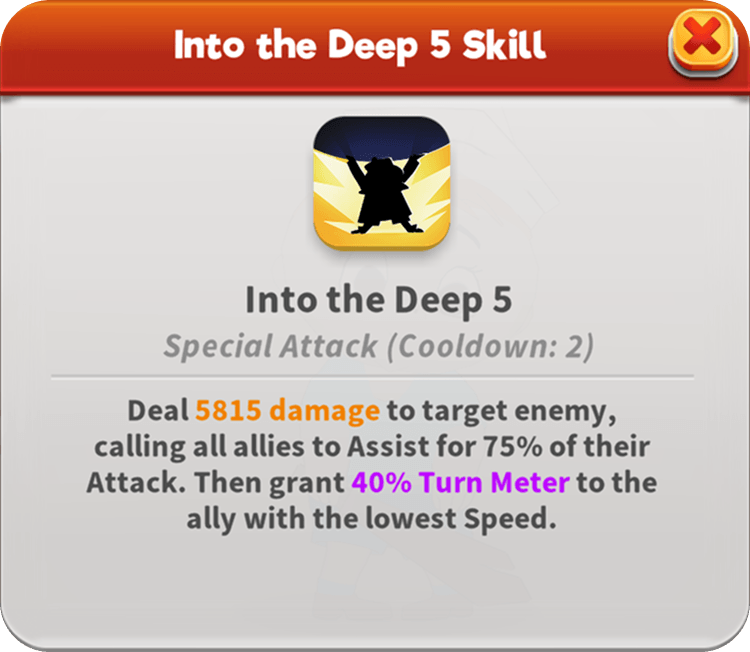 Adrift between the classroom and the thundering seas, Ralph Phillips imagines himself as a sailor in the Navy. From the outset, this Attacker navigates with caution, gaining Evasive Maneuvers at the start of battle and granting it to all Navy members when an ally is defeated. He keeps the pressure high by routinely granting Attack and Piercing buffs to his team while increasing Max Health on those who Assist. When the Pirates loom on the horizon, he ensures his team consistently gains Evasive Maneuvers, and also rallies them to follow as he boldly charges Into the Deep.