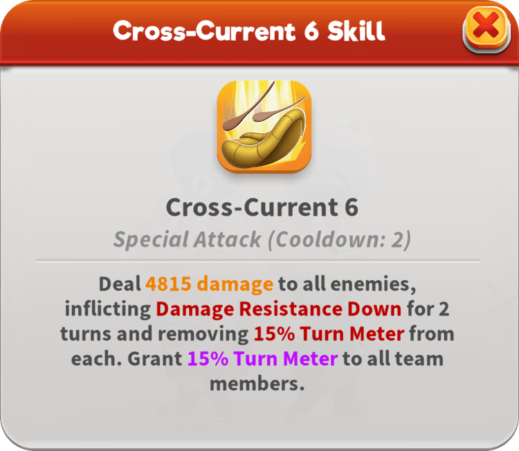 As the steadfast Support for the Navy, First Mate Porky keeps the crew afloat with timely healing, restoring their vitality with Heal Over Time and boosting their momentum with Turn Meter. Enemies struggle to gain ground as he removes their Stat Ups and reinforces his team’s Piercing, calling for Assists to maintain the pressure. He anticipates threats by healing or granting Evasive Maneuvers to the most vulnerable crewmates when the strongest enemy Attacker makes their move. His Unsinkable Spirit keeps the whole crew standing.