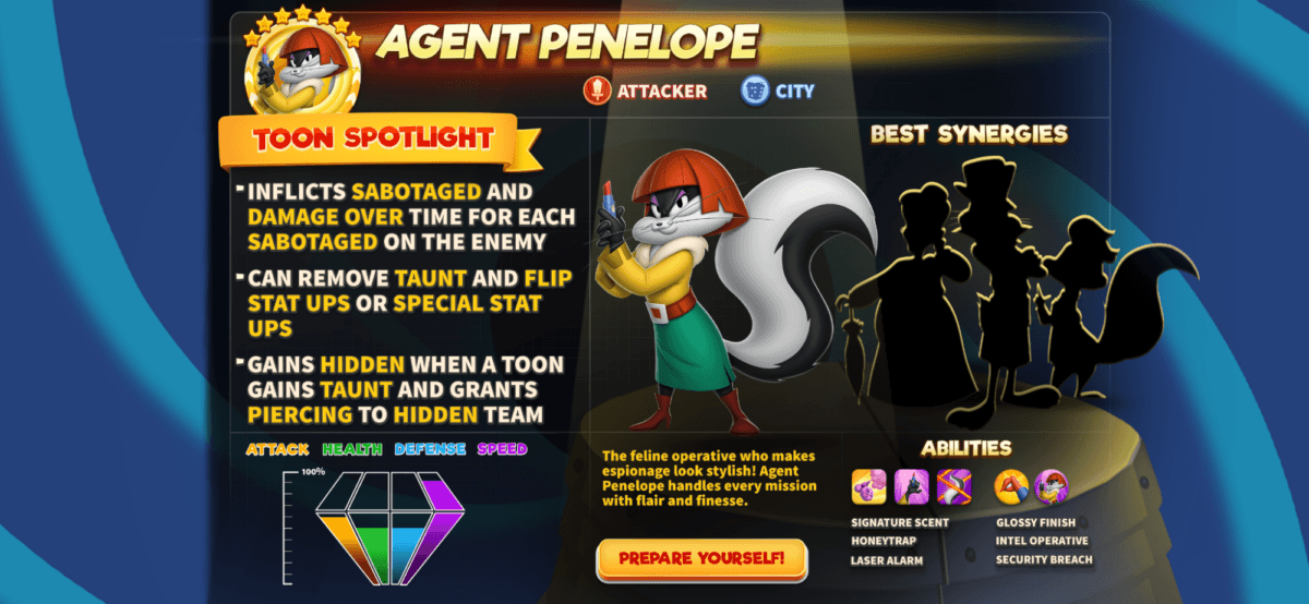 Enemies think they’ve got the upper hand? That’s cute. Penelope sabotages their plans faster than you can say “classified,” stacking damage while flipping their precious buffs like pancakes. And if someone tries to hide behind a Taunt? Oh, honey… she removes it like yesterday’s disguise.