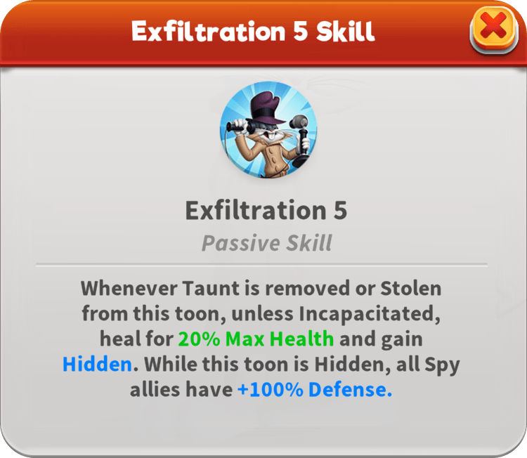 Agent Elegant Mess slips into hostile territory to dismantle operations from within, Flipping Stat Ups or Special Stat Ups and inflicting Sabotaged on all enemies while sustaining himself with Max Health heals. Enemies who Taunt only make his job easier, as he inflicts additional Sabotaged on them. This Defender works best with allies who keep a low profile, as he gains extra Defense and Critical Defense for each Hidden ally, and in turn boosts their Max Health whenever they gain Hidden.